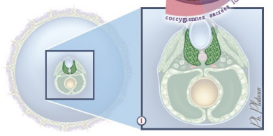 A la fin de la 4e semaine, les cellules du sclérotome ont migré en direction axiale entourant la chorde et le tube neural