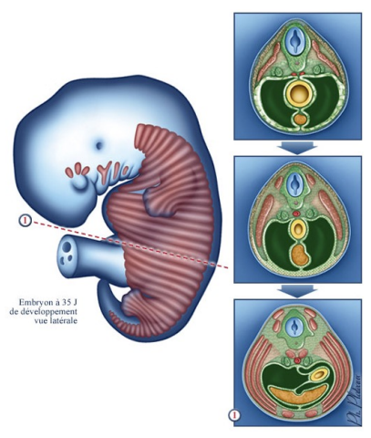 - au niveau dorsal, le dermo-myotome, creusé d’une cavité