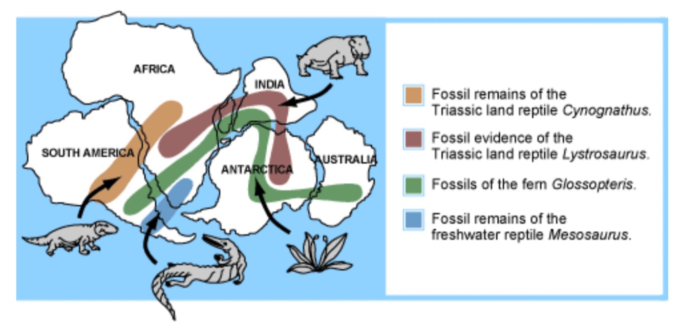 Fossil record; Biogeography; Comparative anatomy (homologous/analogous/vestigial); Comparative embryology; Genetics/DNA & molecular evidence; Modification by descent/natural selection.