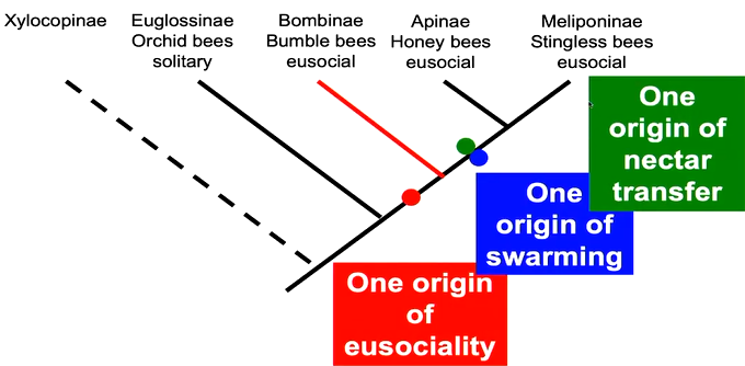Describe the evo history of swarming behavior in bees