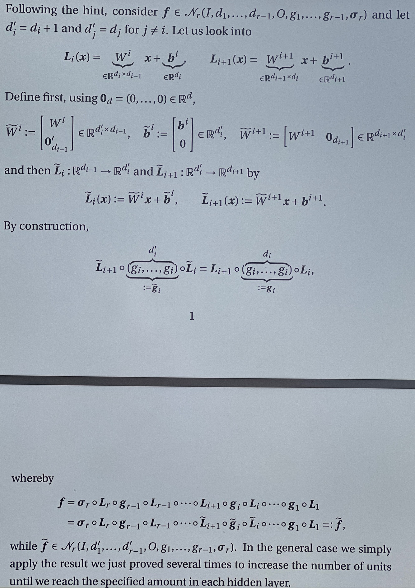Crucially, we add a 0 vector to the bottom of the new Wi and a single zero to the new bi BUT Wi+1 adds a zero vector to the right side because the dim that increases is transposed