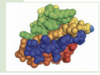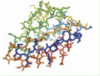 Folding pattern where a single polypeptide twists into a rigid cylinder stabilized by hydrogen bonds between every 4th amino acid; found in keratin (hair, nails, skin).