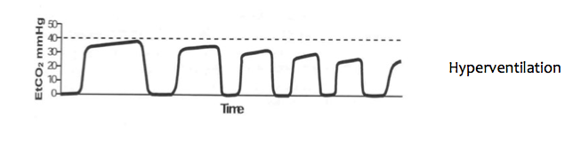 *CO2 mmHg should always go back to Baseline (0 mmHg) during Inspiration, UNLESS we are Rebreathing. If we are Rebreathing CO2 then it will be Elevated off the Baseline- KNOW THIS