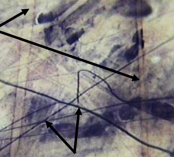 What are the arrows pointing to? (List 2 structures present)