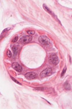 Pancreatic Acini Ducts lined with cuboidal cells.