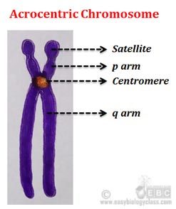 Where in the nucleus are acrocentric chromosomes located and what do they contain?