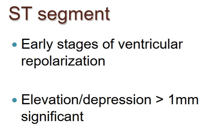 ST segment represents the interval between depolarization and repolarization of the ventricles.