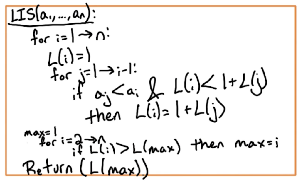 L(i) = length of LIS in a_1, … , a_i that includes a_i