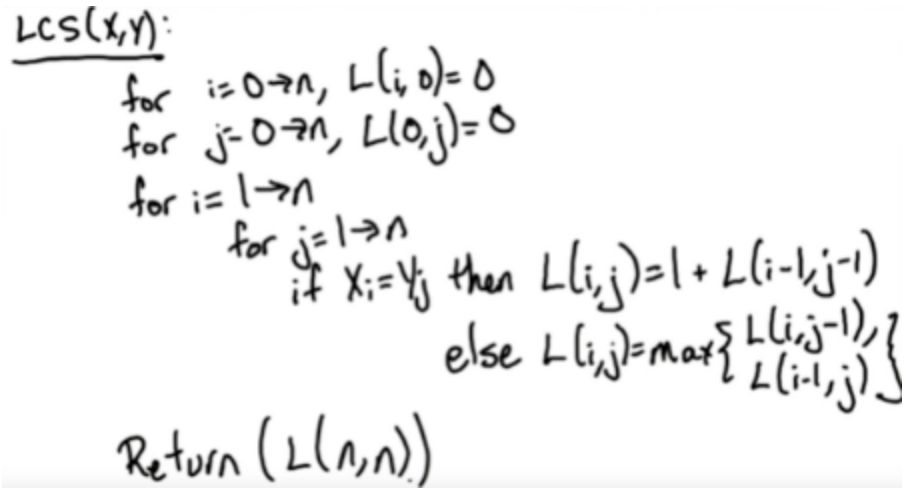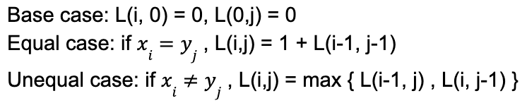 For i and j where 0 <= i or j <= n, let L(i,j) = length of LCS in x_1, … , x_i and y_1, … , y_j