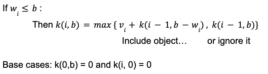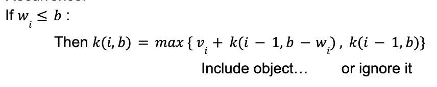 Given this subproblem for nonrepeating knapsack, what is the recurrence?