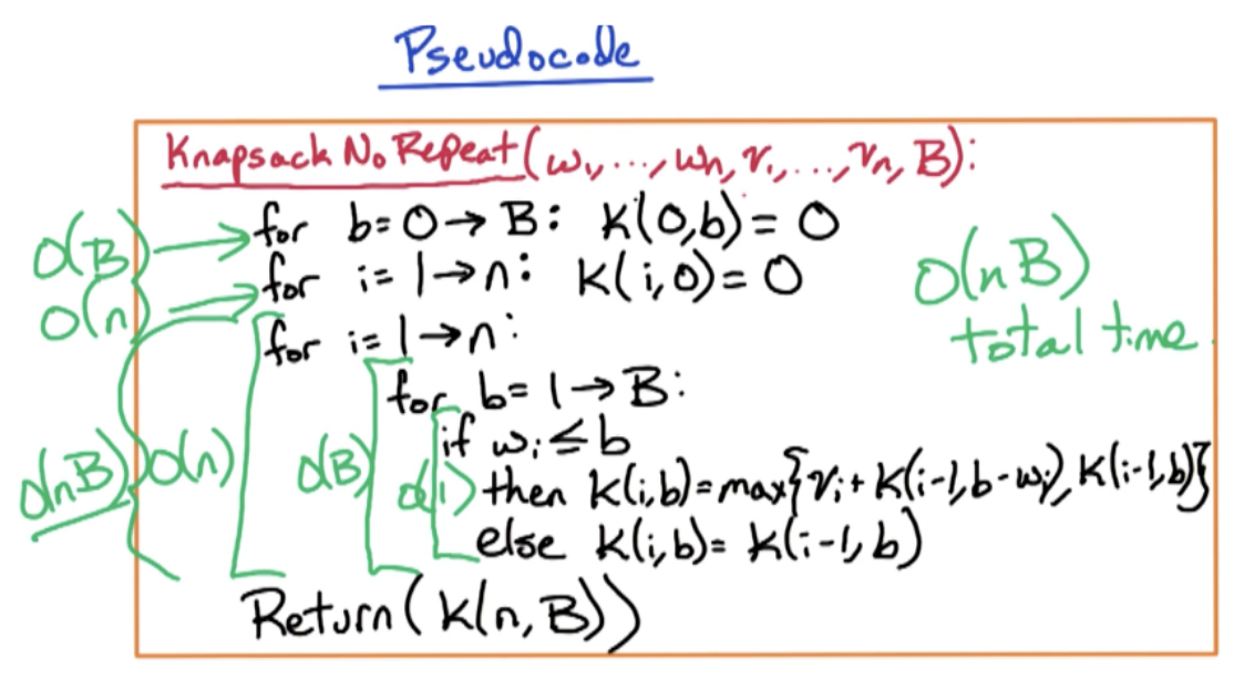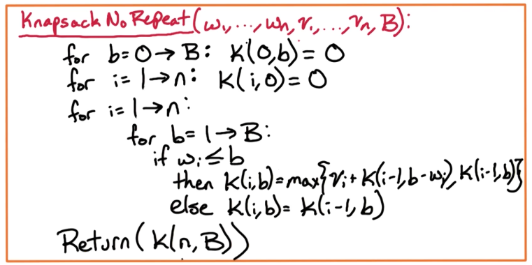 Given this recurrence for nonrepeating knapsack, what is the algorithm?