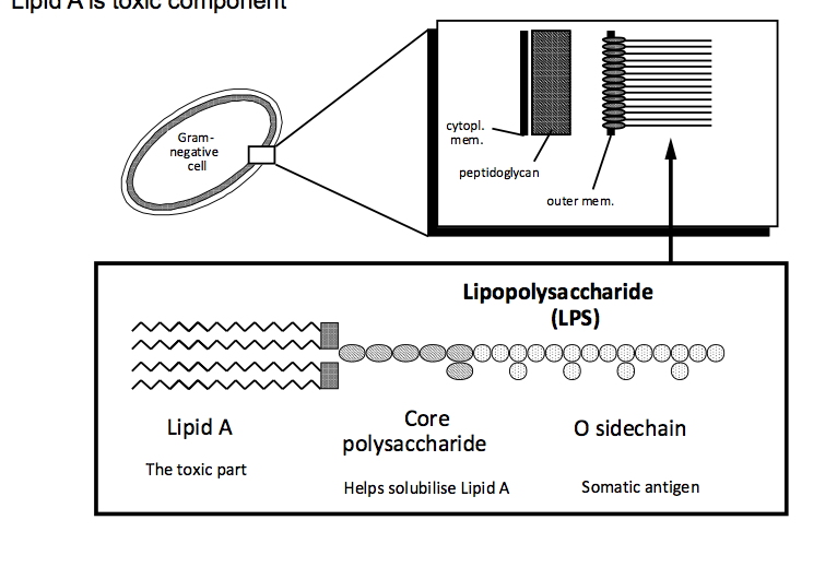 LPS aka endotoxin composed of polysaccharides and lipid A