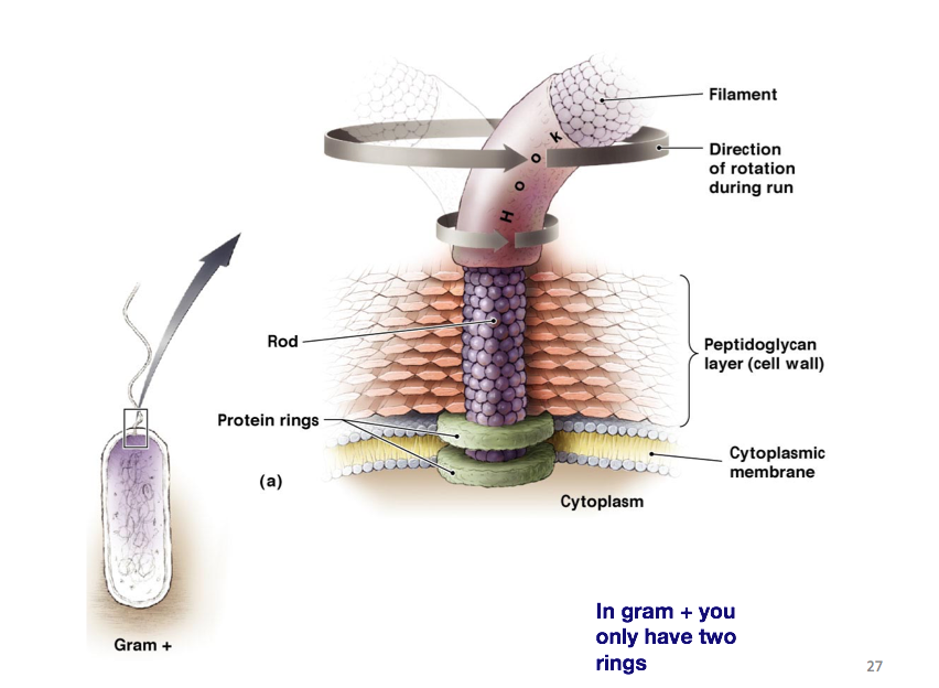 How does the bacterial flagella structure differ in gram negative and gram positive bacteria?