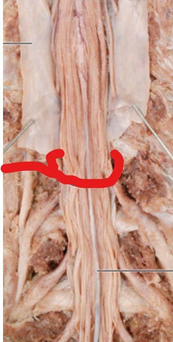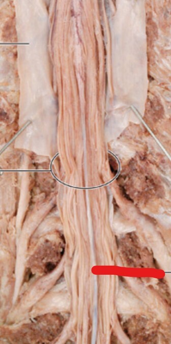 What is the pinned structure that is reflected back and what part of the vertebral column is it inferiorly attached to?