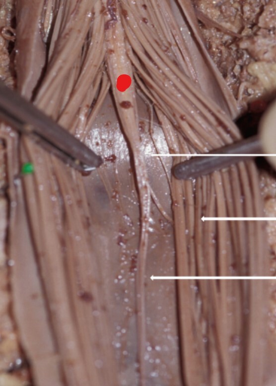The pinned structure is superficial to which muscles?