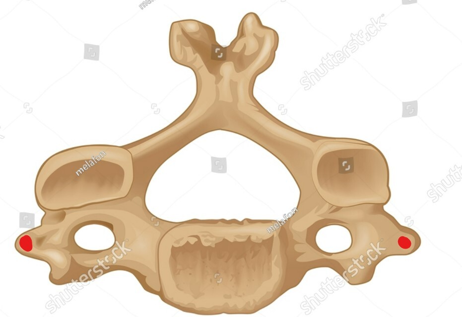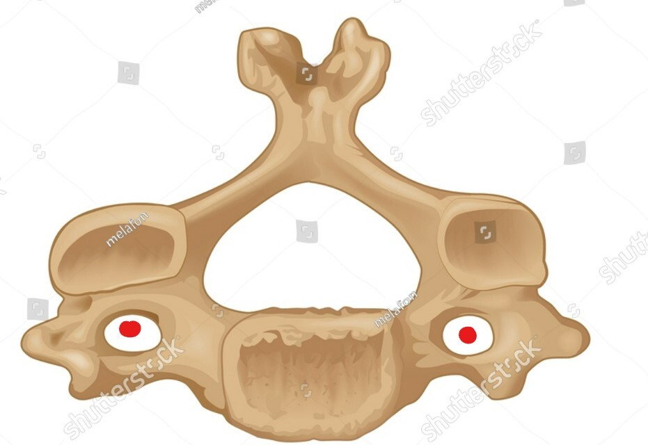 vertebral artery ascends thru the dots, course through CV6-CV1