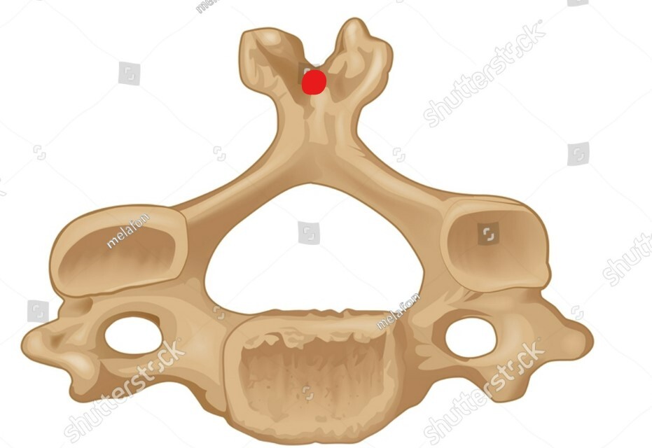 CV7 or vertebra prominens, its transverse and spinous processes do not bifurcate, it also only has a vertebral vein coursing thru its transverse foramen, longest most prominent spinous process