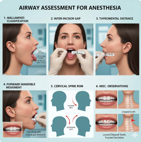 What are the components of an airway examination?