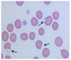 Basophilic stippling stains as blue-black granules whereas polychromasia stains a diffuse pinkish-gray on the Wright’s stain