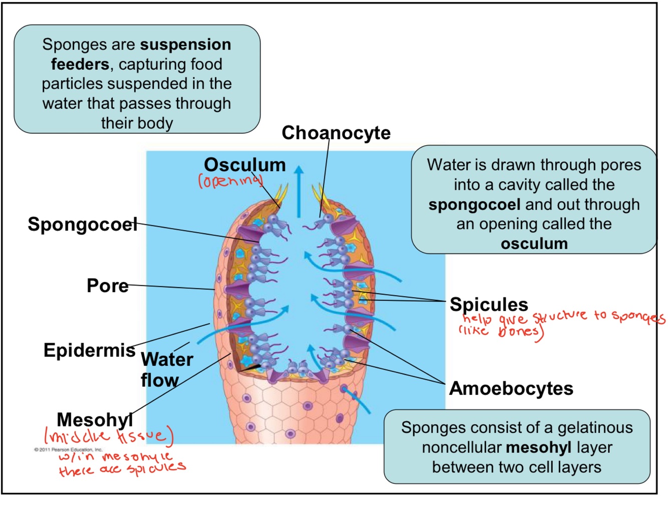 (1) sponges are suspension feeders, capturing food particles suspended in the water that passes through their body