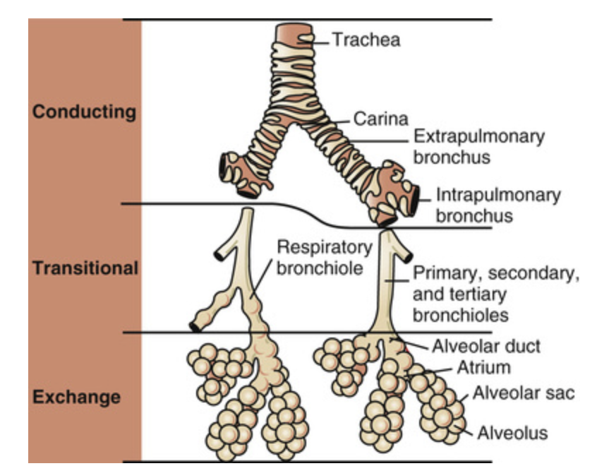 Conductive system: Nose, paranasal sinuses, larynx, trachea, and bronchi