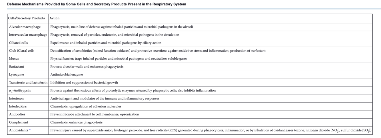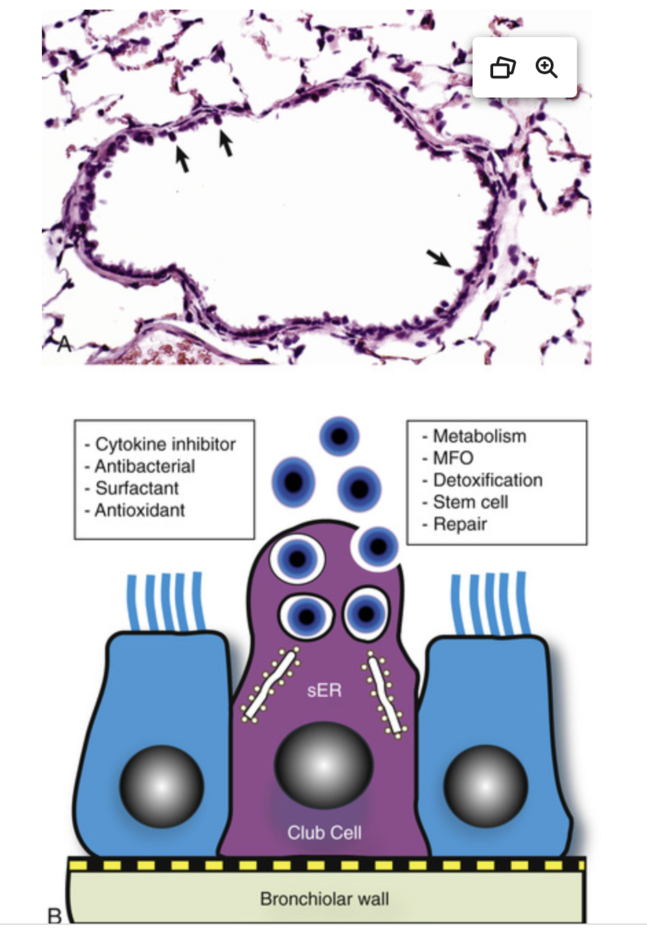 Club Cells Upper respiratory defense mechanism (Trachea, bronchus)