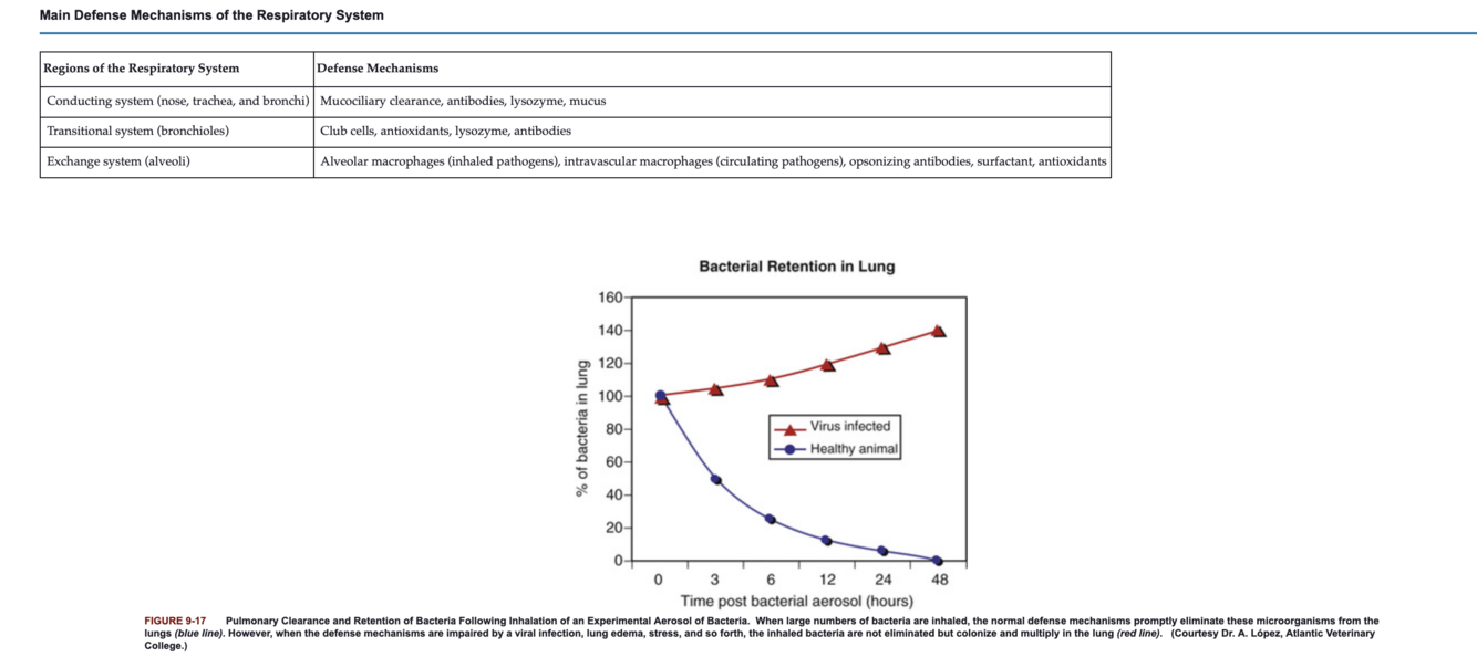 Lower respiratory defense mechanism (Bronchi, bronchioles, alveoli)