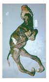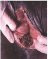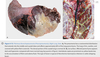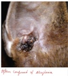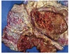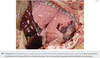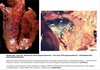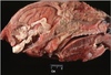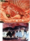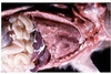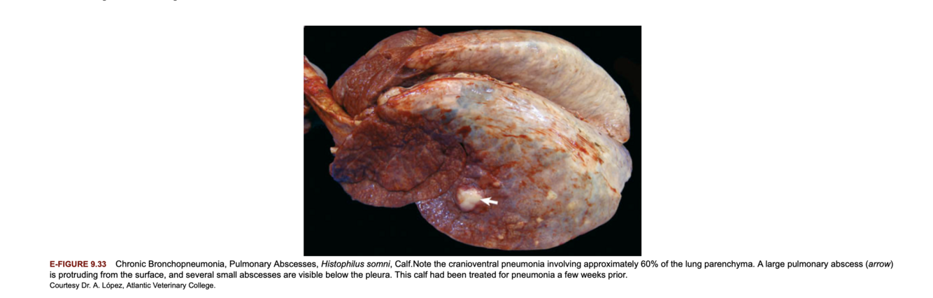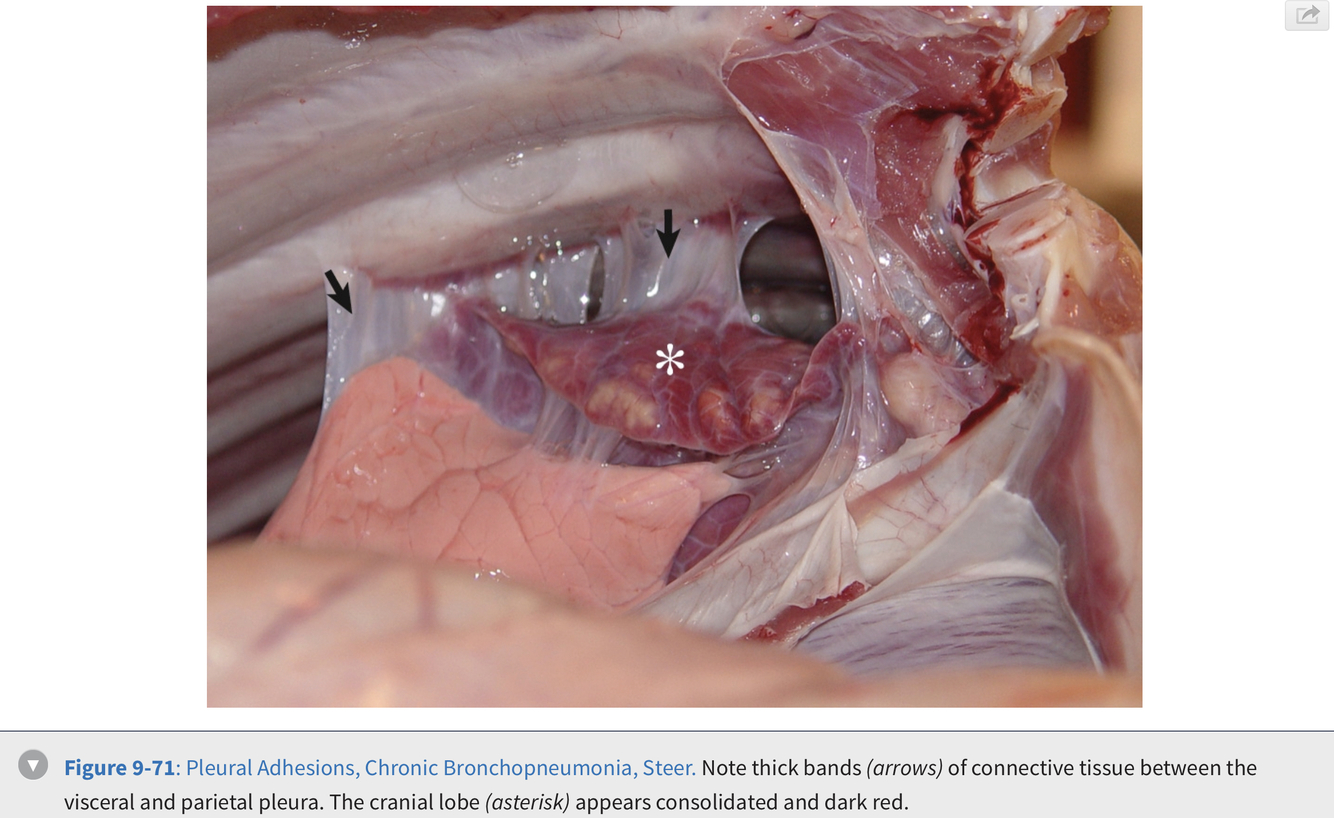 Cranioventral abscesses, adhesions, bronchiectasis (chronic inflammatory or degenerative condition of the bronchi marked by dilation and loss of elasticity)