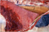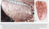 -Injury to Squamous epithelium (MUCOCUTANEOUS JUNCTION) located in vestibular region of the nose, similar pattern of necrosis and inflammation as the oral mucosa.