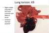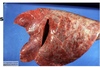 -Consolidated lungs sink to the bottom of container when placed in fixative due to replacement of air by exudate. Texture firm or harder than normal. HEPATIZATION bc the texture is firm like the liver and hyperemia present.