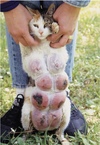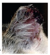 -Feline calicivirus: acute, multifocal vesicular glossitis. Infections cause ulcerative stomatitis (ulcers and inflammation of the oral cavity), glossitis (vesicles, ulcers, and inflammation in tongue), conjunctivitis and interstitial pneumonia. Lesions vary from subclinical to lethal depending on the strain of the virus and include rhinitis, conjunctivitis, acute diffuse interstitial pneumonia with necrotizing bronchiolitis. “Limping kitten syndrome” self-limiting arthritis. High mortality 50% and febrile hemorrhagic syndrome. Laboratory tests are always required for a definitive diagnosis.