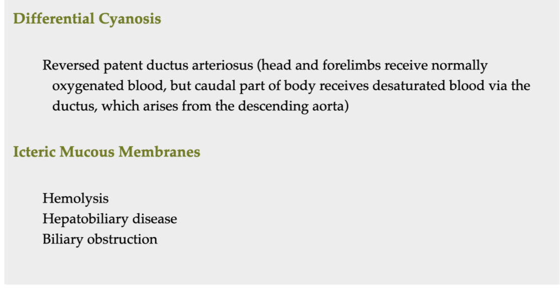 MMs: petechia = platelet disfunction, Icterus = yellow (hemolysis, hepatobiliary disease)
