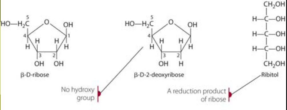 Monosaccharides Ribose (5C) and Deoxyribose comprise part of RNA and DNA
