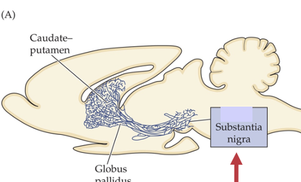 Loss of dopaminergic neurons in what brain area leads to Parkinson’s disease?