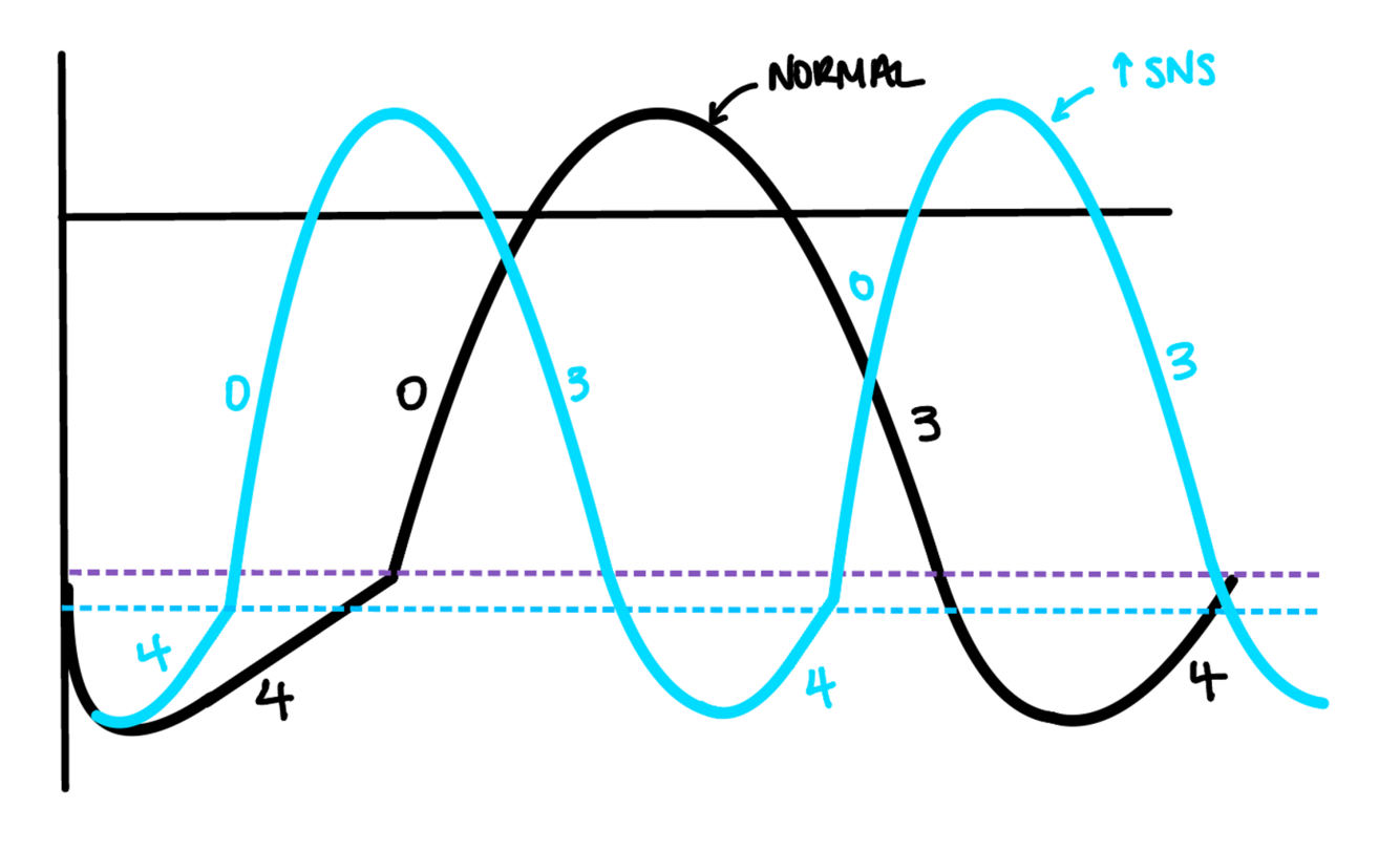 ↑ SNS input to SA node: