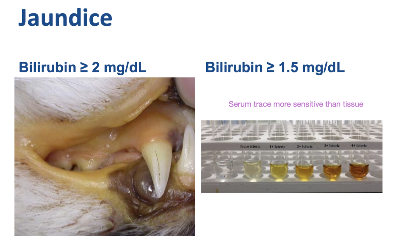 1. Large, persistent increase of bilirubin (hyperbilirubinemia), exceeds capacity o liver to take up and excrete it