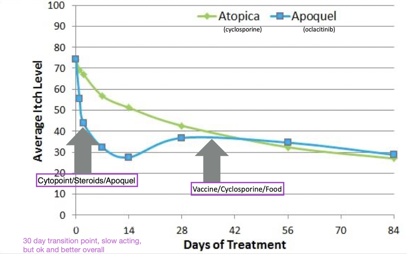 Which medications/treatments have the most adverse effects, but can be used for short burst 3-5 days to reduce severe itch caused by infection (yeast/mites) during the 1-2 week allergy treatment phase? 5-10 itch scale