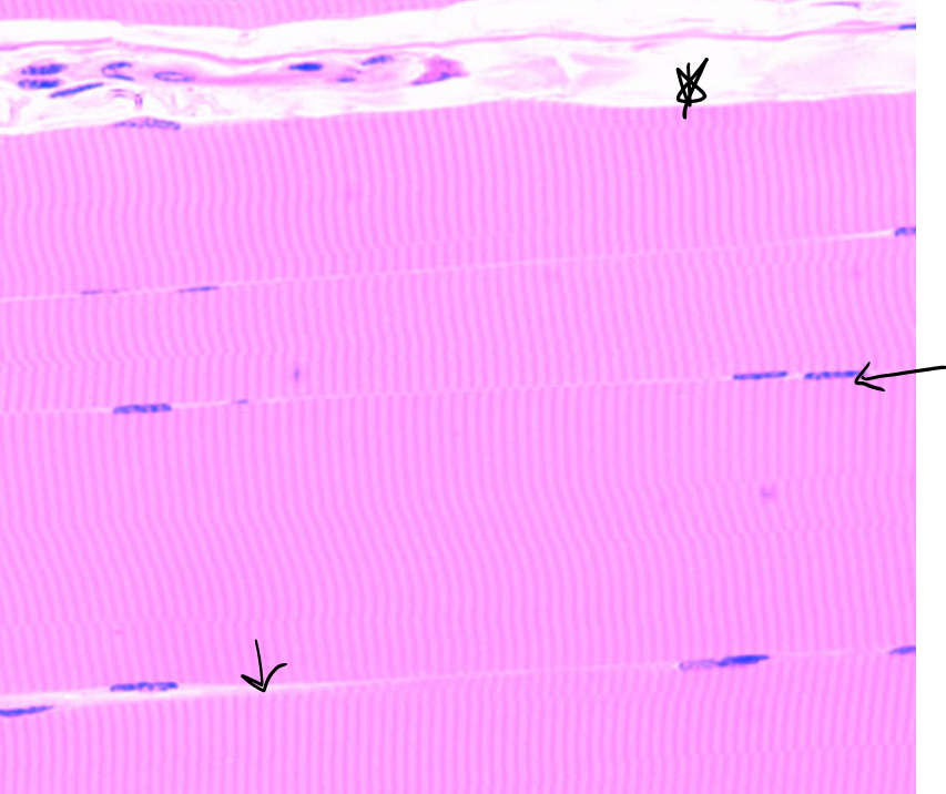 What type of muscle is this? Label all 3 arrows from the top to bottom