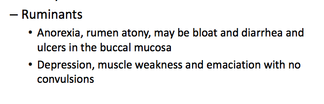 *Depression and Muscle Weakness- Ruminants do not get Convulsions