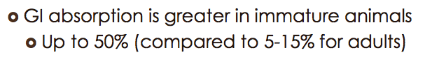 *Young Animals are More Sensitive than Adults- Greater Absorption and Immature BBB in Younger Animals. Lead is more likely to cross the Blood Brain Barrier in Younger Animals
