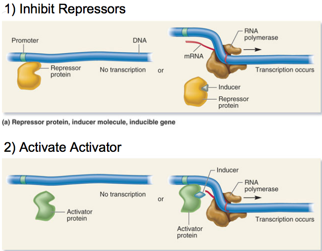 Inducers 1 transcription by 2 repressors and 3 activators.