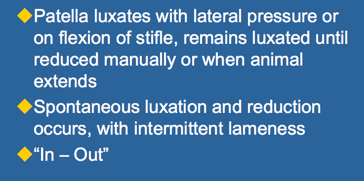 Grade of Patellar Luxation Described Below: