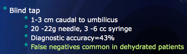 Procedure for Abdominocentesis where False Negatives are Common in Dehydrated Patients