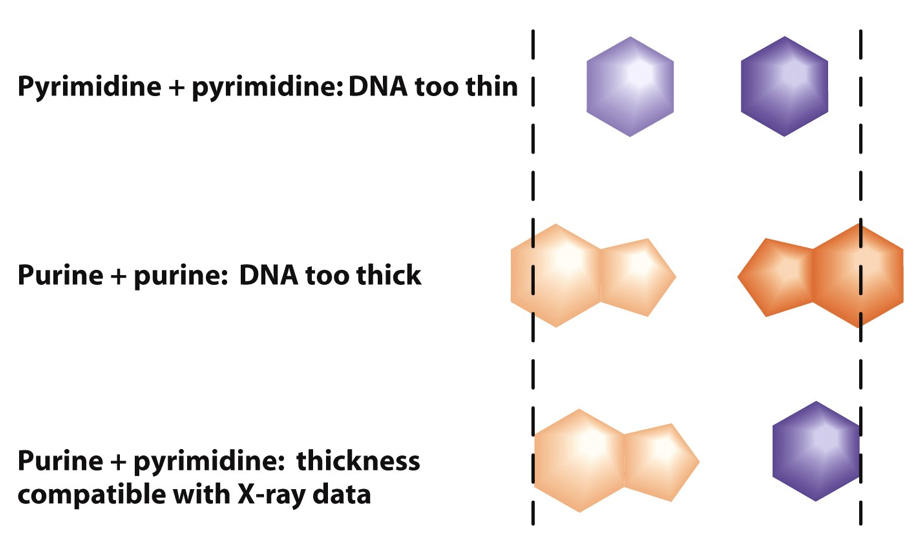Suggests a purine must pair with a pyrmidine, and base pairs must be restricted to A-T and G-C