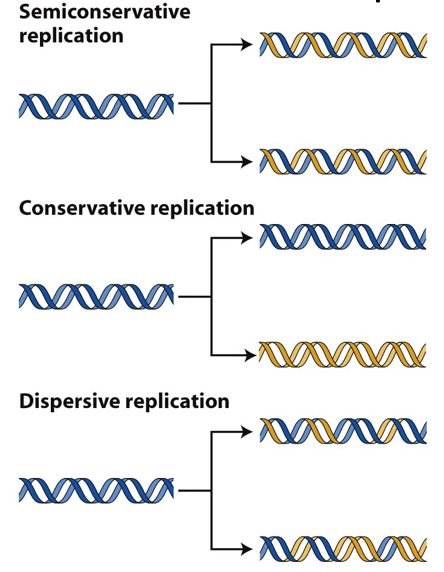 What are the three models of DNA replication predicted by Meselson-Stahl?