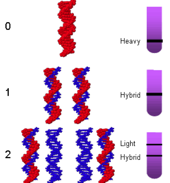 Used 15N and 14N labels to differentially weight DNA, if replication was not conservative, new replicants would show up in different locations after centrifugation. They did not.