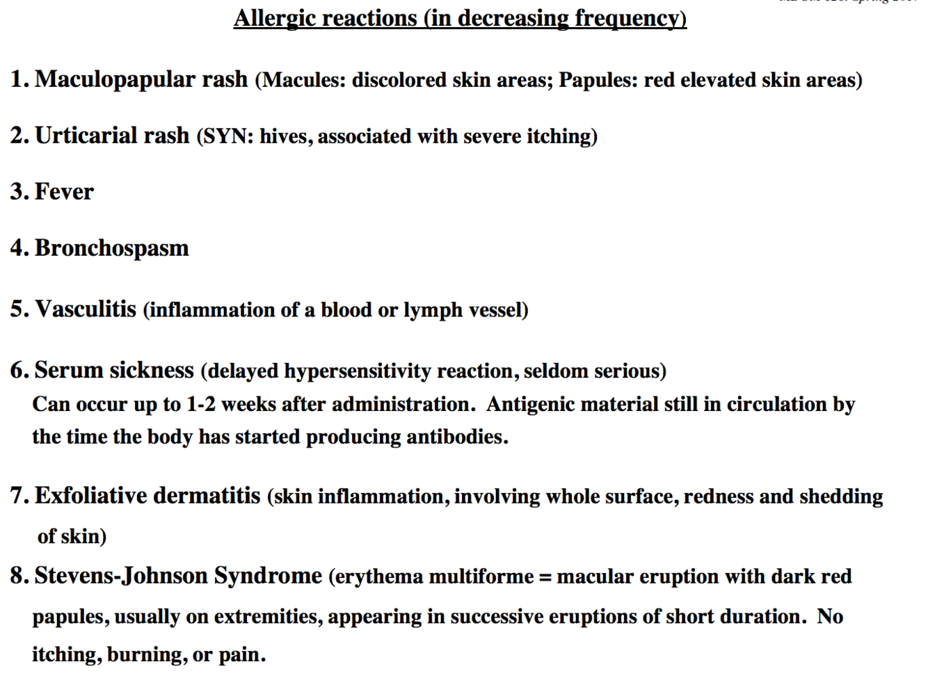Allergic Rxns in decreasing frequency
