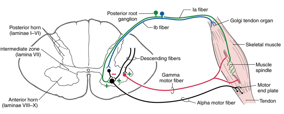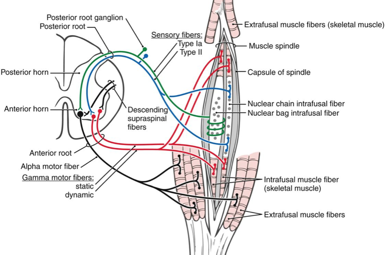 Gamma motor fibers receive supraspinal input from the cerebral cortex which signals contraction of the intrafusal fiber.