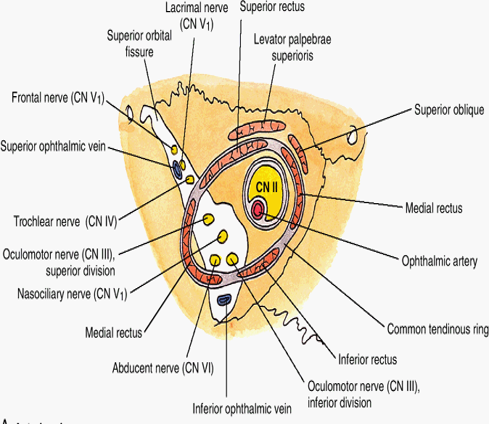 con’t with periostem coering external surf of skull @ orbital margin & inf orb fissue