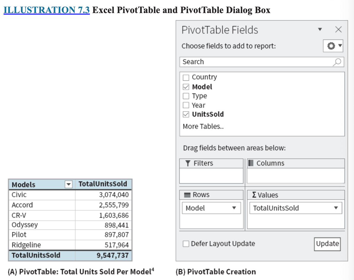 In Illustration 7.3, the Model and UnitsSold fields are used for exploration.